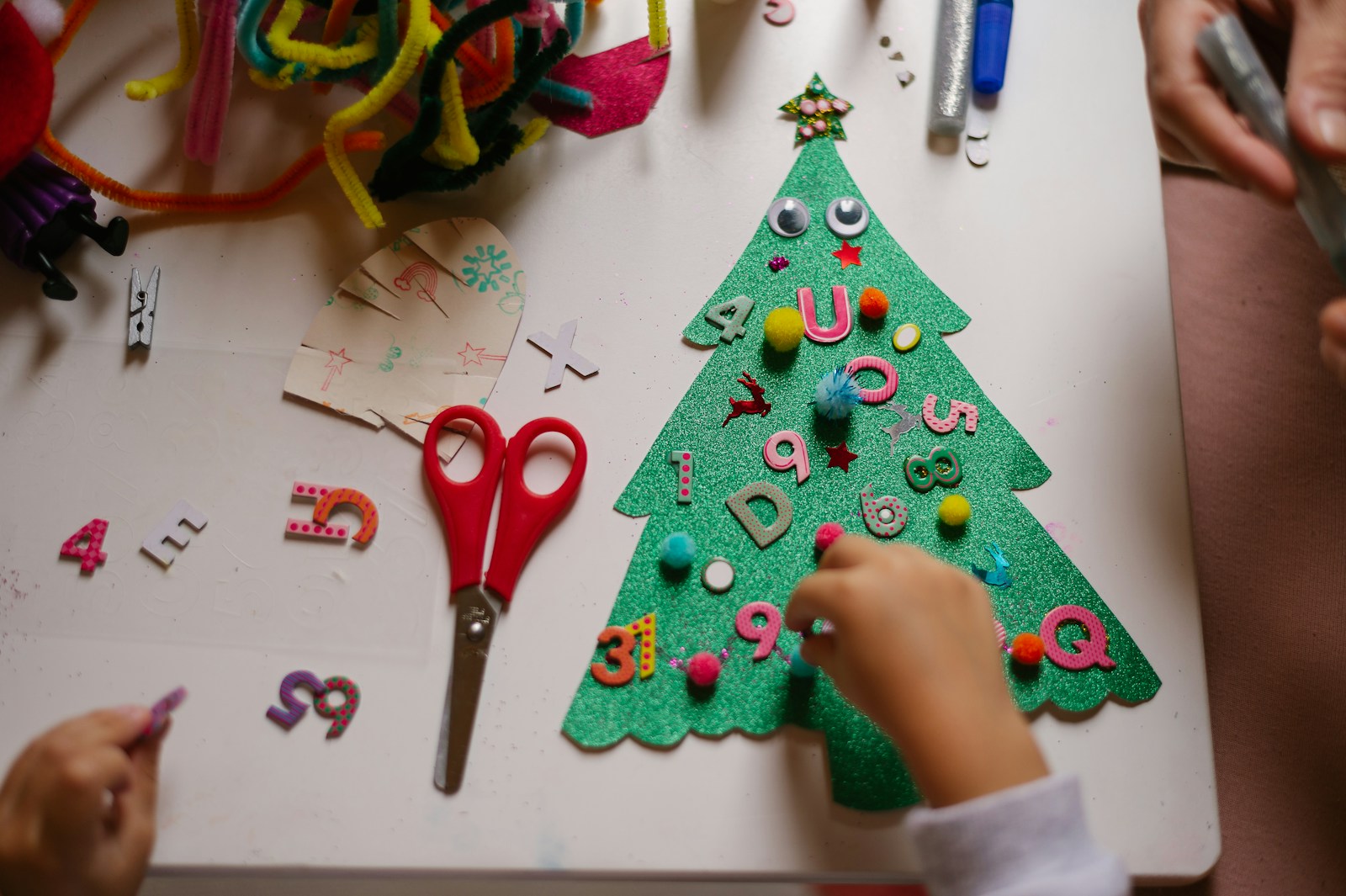 - Guirlandes en papier : Découpez des formes de sapin ou des étoiles dans du papier coloré et encouragez les enfants à créer une guirlande pour décorer leur chambre.